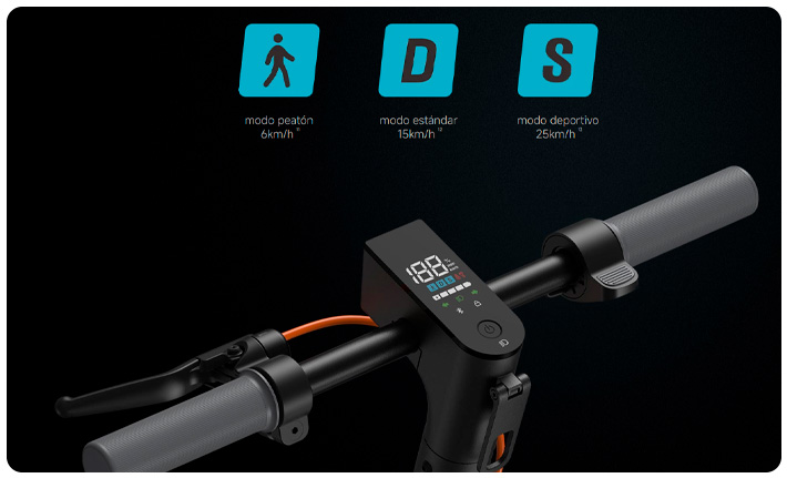 - · 3 modos: Peatón (6km/h), Estándar (15km/h) y Deportivo (25km/h)
