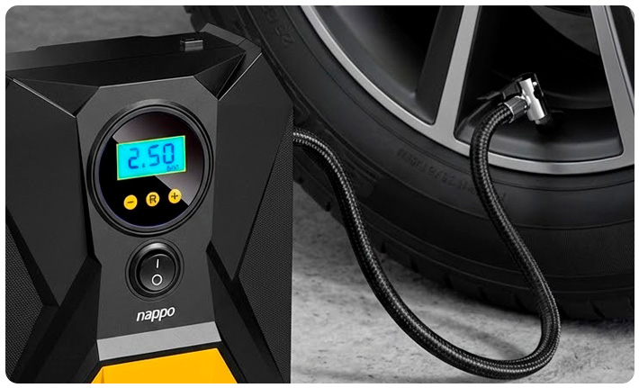 Inflador NAPPO Compresor de Aire con Conector 12V, Potencia de 120W y Presión Máxima de 150PSI + Accesorios
