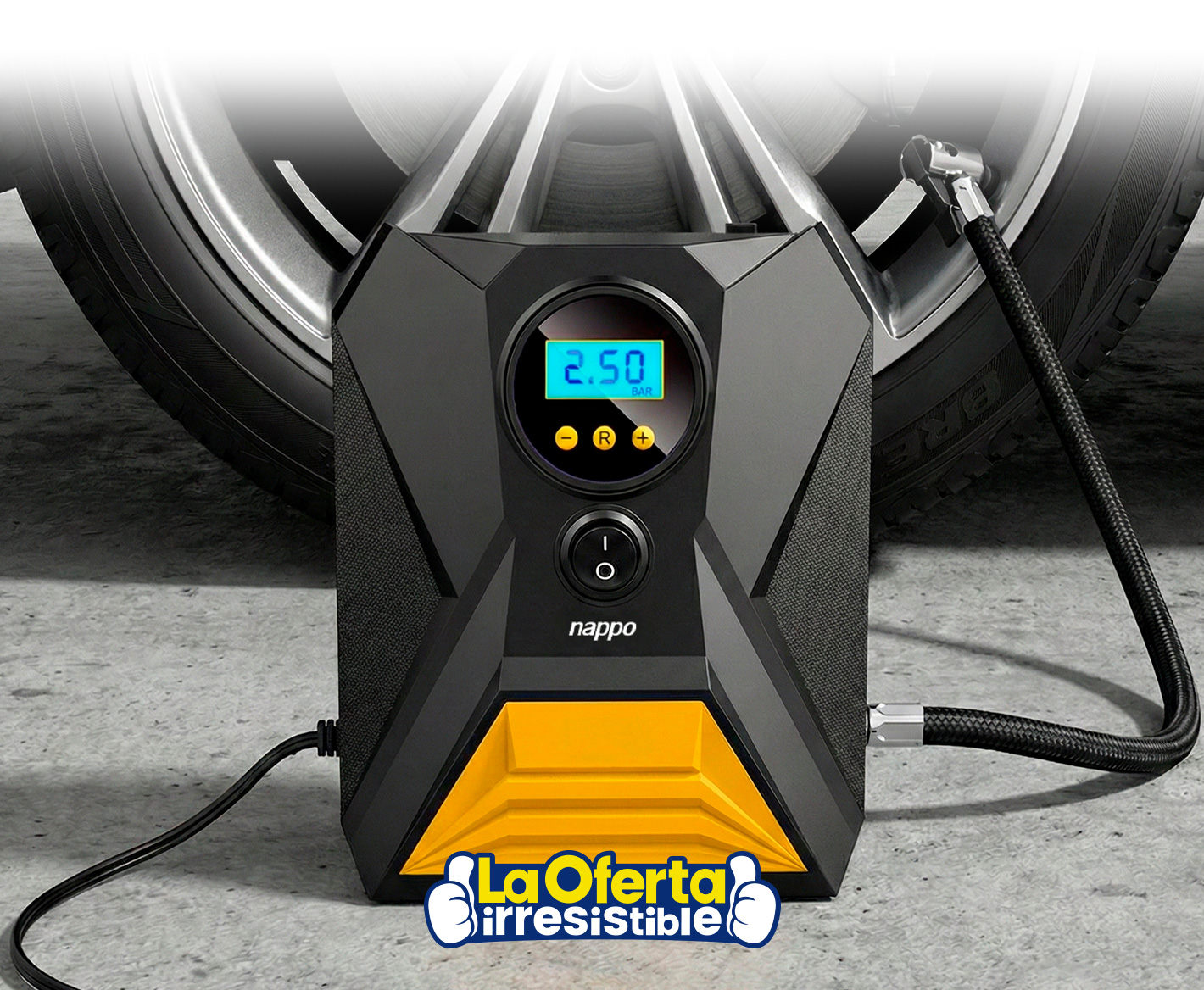 Este inflador NAPPO de 120W es una solución práctica y portátil para inflar neumáticos con rapidez y precisión. Funciona a 12V mediante conector al encendedor del vehículo y alcanza una presión máxima de 150PSI (10,5bar), con un caudal de aire de 22L/min que permite inflar un neumático en aproximadamente 6 minutos. Incorpora medidor de presión digital, apagado automático y lámpara LED superior para mayor seguridad y comodidad, además de contar con cables de 2,5m, espacio de guardado integrado y accesorios incluidos, ideal para autos, motos, bicicletas, pelotas y juguetes inflables.Podés canjear este artículo usando tus Metros OCA