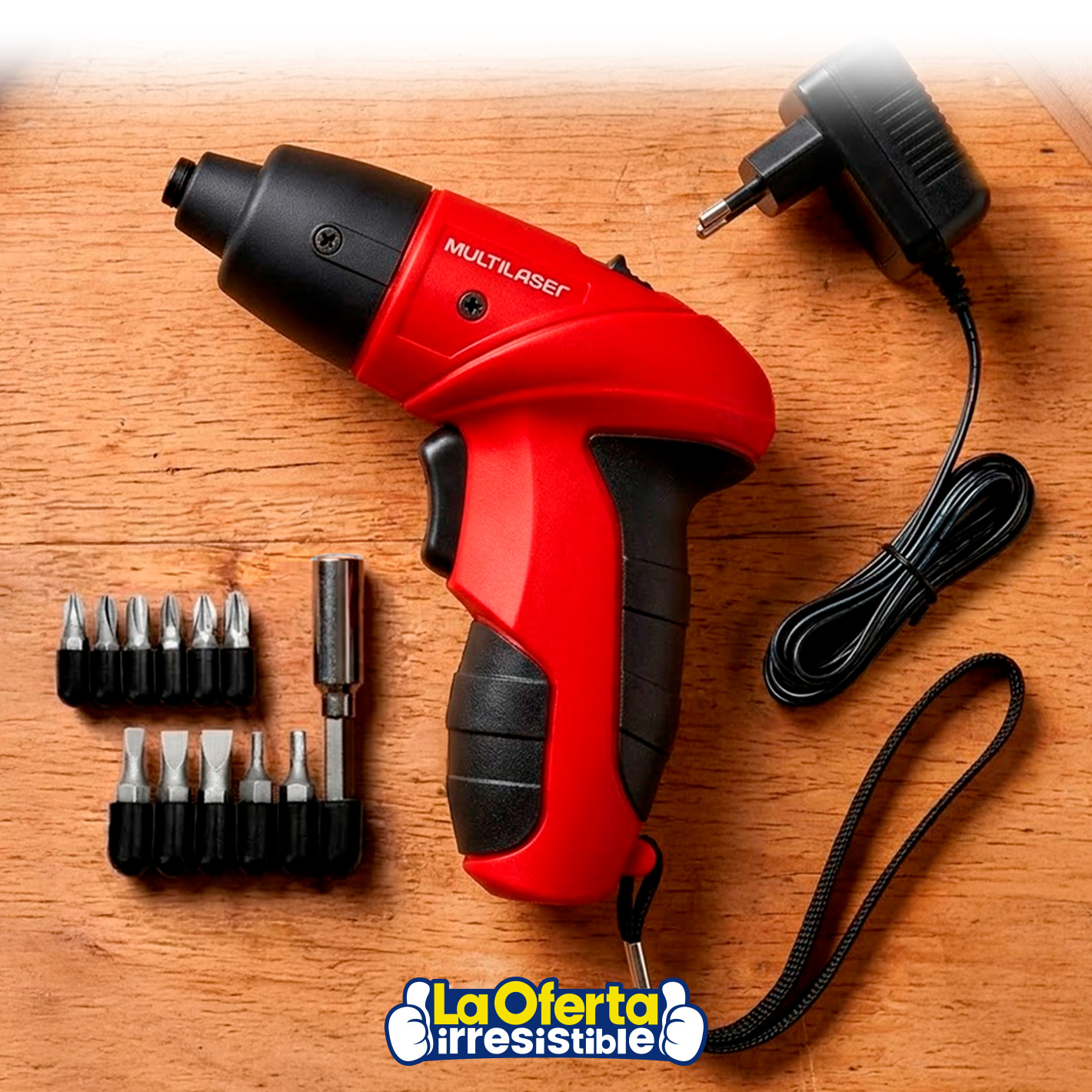 Destornillador Eléctrico Multilaser Inalámbrico con Iluminación LED y Accesorios