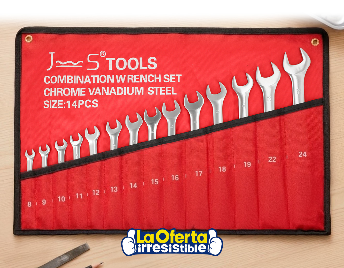 • Este producto: Juego de Llaves Combinadas de 8-24mm con 14 Piezas y Organizador, Calidad Premium - $ 970