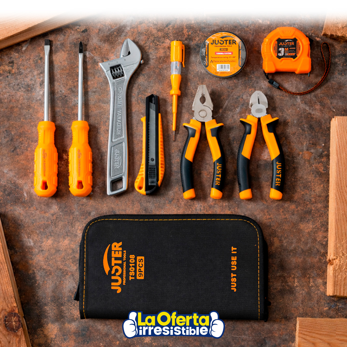 Set de Herramientas JUSTER de 9 Piezas, con Mangos Ergonómicos y Estuche de Almacenamiento