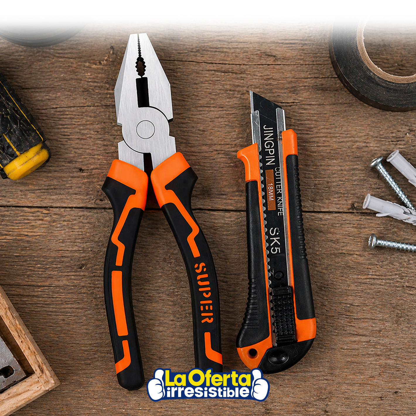 • Este set de herramientas es una solución práctica y versátil para múltiples tareas, ideal tanto para el hogar como para uso profesional. Incluye un alicate universal y una trincheta, diseñados con mangos ergonómicos antideslizantes que brindan mayor comodidad y control durante el uso. La trincheta cuenta con hojas de acero SK5 de alta resistencia y un seguro de protección que garantiza mayor seguridad. Perfecto para trabajos de construcción, taller, mantenimiento o tareas domésticas, este set combina funcionalidad, durabilidad y precisión en cada uso.