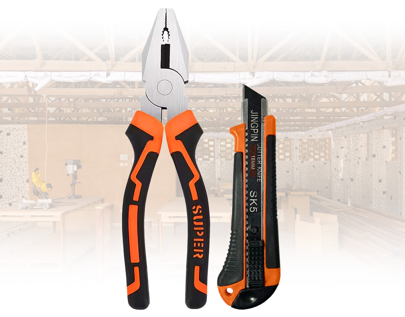 Set de Herramientas con Alicate Universal y Trincheta con hoja de Acero SK5 de 18mm