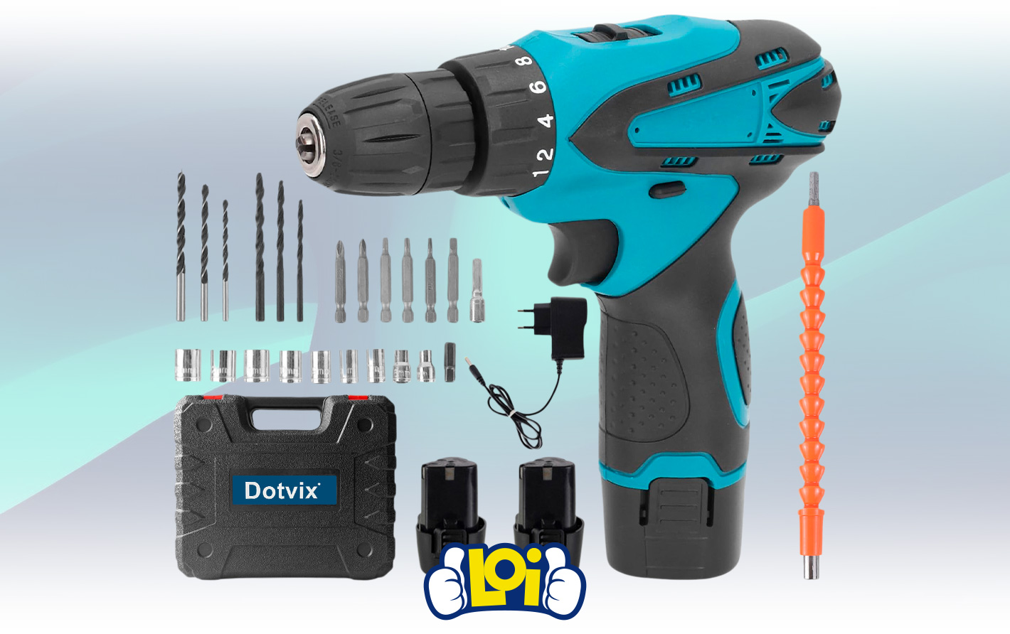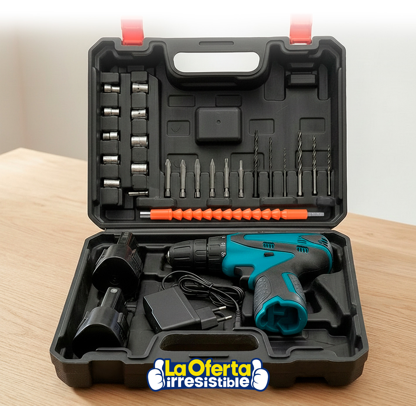 Taladro Atornillador Inalámbrico con 2 Baterías de 12V, Maletín y Accesorios