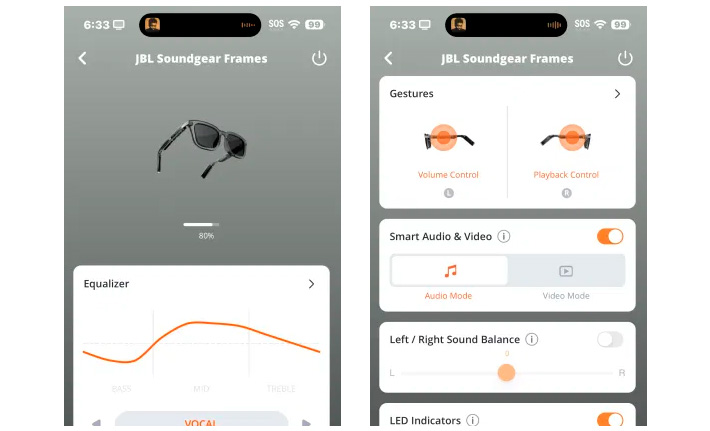 Los JBL Soundgear Frames combinan diseño, confort y tecnología para brindar una experiencia de audio abierta y envolvente durante todo el día. Gracias a la tecnología JBL OpenSound, cada patilla integra un altavoz rectangular ultradelgado de 25 × 9 mm que ofrece un sonido potente y definido sin aislarte del entorno. A su vez, la matriz de dos micrófonos con formación de haz, junto con la cancelación de ruido y la supresión de eco, asegura llamadas manos libres nítidas incluso cuando estás en movimiento. Con hasta 8 horas de autonomía y carga rápida que suma 2 horas en solo 10 minutos, son ideales para el uso diario, además de contar con resistencia al agua IP54. Todo esto se integra en un diseño liviano y elegante que incorpora controles táctiles en el logo JBL, encendido automático al abrirlos y lentes semitransparentes con protección UV A/B.Disponible en: