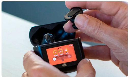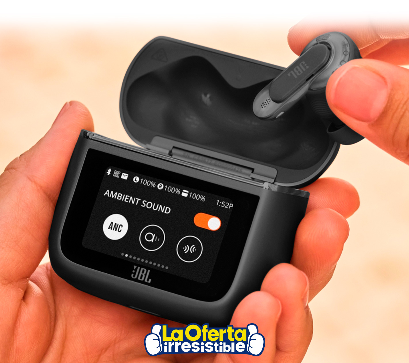 - Sin sacar el teléfono del bolsillo. La funda de carga inteligente recientemente rediseñada de los JBL Tour Pro 3 incorpora todas las funciones que necesitás para controlar y personalizar completamente tu experiencia sonora, con ajustes en varios idiomas, directamente desde la funda. Usá la pantalla táctil más nítida y ampliada de 1,57" para ver qué canción está sonando o quién te llama y personalizala con tu foto favorita. En la pantalla con bloqueo dinámico, consultá el nivel de batería, la hora, los mensajes, etc.