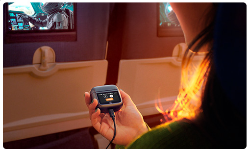 La funda de carga inteligente se transforma en un transmisor de audio inalámbrico a los auriculares desde cualquier fuente AUX (auxiliar) o USB-C, como la televisión o los sistemas de entretenimiento del gimnasio o el avión. Solo tenés que utilizar uno de los dos cables de audio incluidos para conectarte y disfrutar. También podés usar el botón Auracast de la pantalla para compartir el contenido con cualquier dispositivo cercano conectándolo a través de la funda de carga inteligente de los Tour Pro 3.