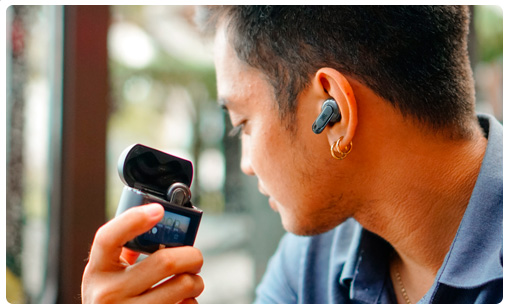 - Escuchá y sentí cada nota de tu lista de reproducción con Personi-Fi 3.0. Da forma a tu audio para que coincida con tu perfil de escucha personal recurriendo a herramientas de personalización interactivas que utilizan información precisa sobre vos y tus preferencias, proporcionando la curva de sonido exacta que mejor se adapta a vos. Y para un grado mayor de personalización, activá la función Personal Sound Amplification para ajustar el equilibrio de los auriculares izquierdo y derecho y amplificar el volumen de las conversaciones de 15 a 20dB.