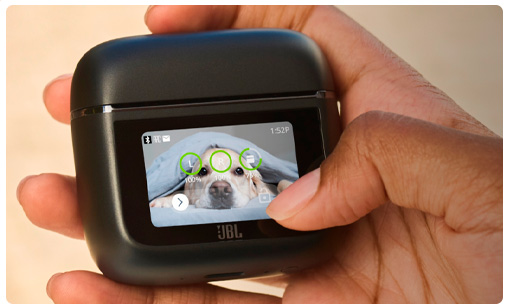 Sin sacar el teléfono del bolsillo. La funda de carga inteligente recientemente rediseñada de los JBL Tour Pro 3 incorpora todas las funciones que necesitás para controlar y personalizar completamente tu experiencia sonora, con ajustes en varios idiomas, directamente desde la funda. Usá la pantalla táctil más nítida y ampliada de 1,57" para ver qué canción está sonando o quién te llama y personalizala con tu foto favorita. En la pantalla con bloqueo dinámico, consultá el nivel de batería, la hora, los mensajes, etc.