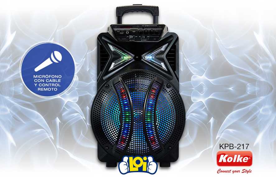 Parlante a Batería KOLKE ROUND PLUS 15'' 250W RMS Bluetooth Micrófono Control Luces LED