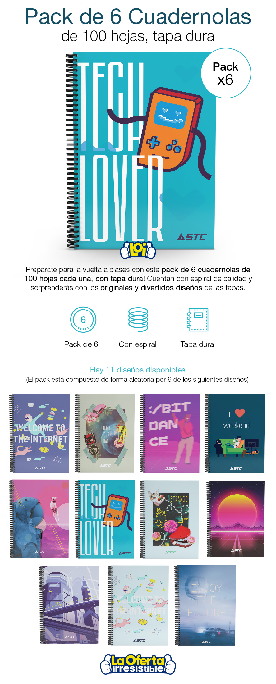 Pack de 6 Cuadernolas de 100 Hojas con Tapa Dura