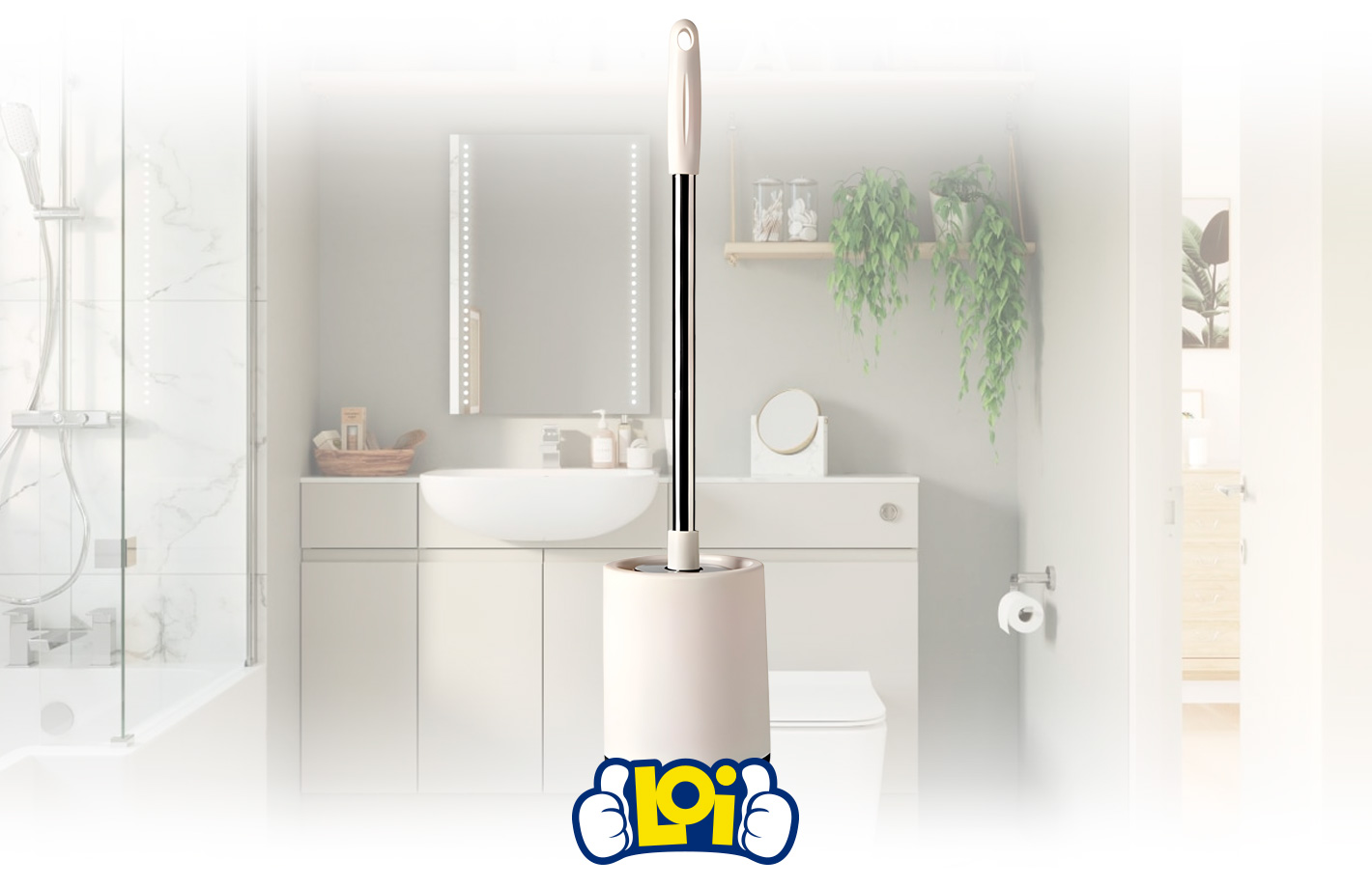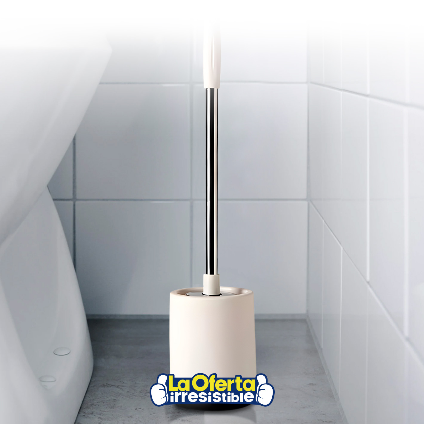 Escobilla para Inodoro con Soporte y Adhesivo para Pared - Blanco