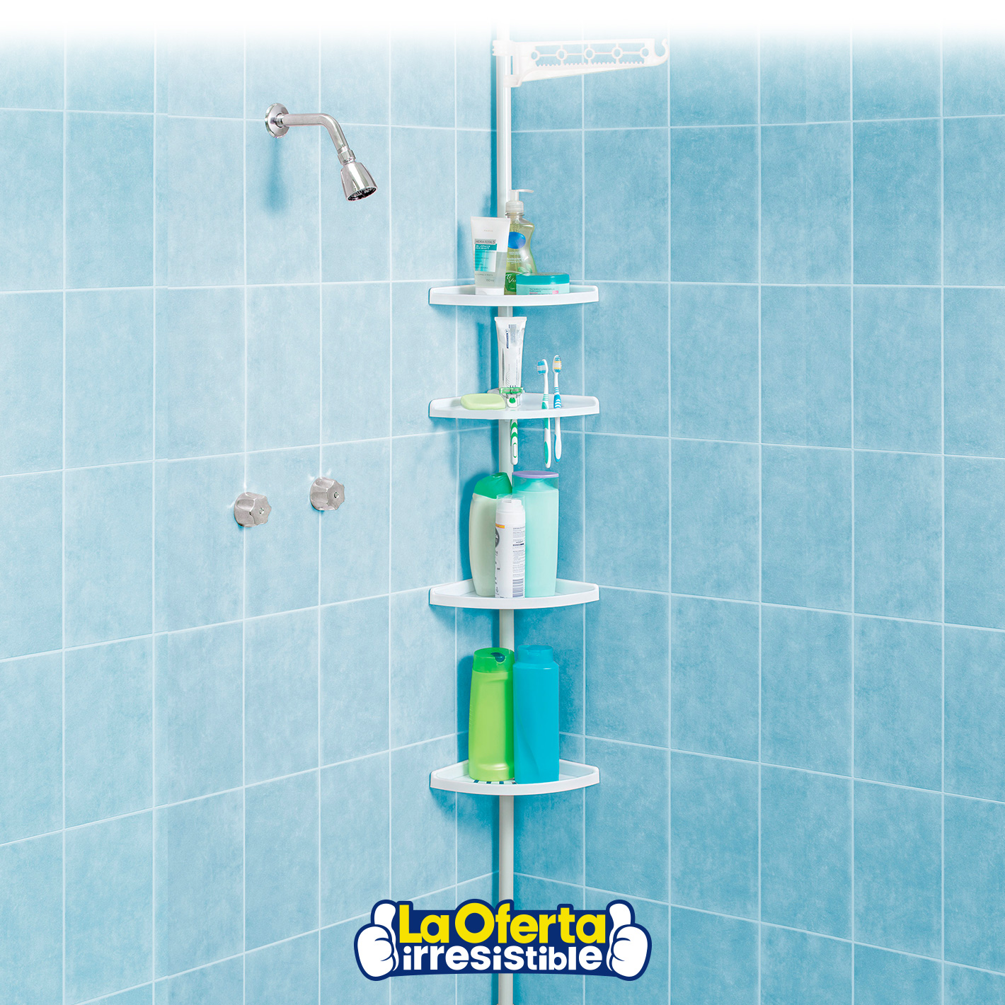 Este esquinero para baño está fabricado en plástico resistente y cuenta con 4 estantes con sistema de autodrenaje, ideales para mantener organizados tus productos de higiene. Incluye toallero y un diseño antideslizante en la parte superior e inferior para mayor estabilidad. Su instalación es muy sencilla y permite ajustar la altura hasta 2,6 metros, adaptándose a distintos espacios y necesidades dentro del baño.