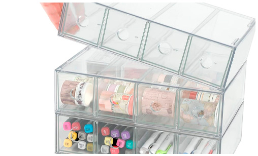 Mantené tus objetos favoritos siempre organizados y a la vista con esta caja organizadora de acrílico con 4 divisiones. Fabricada en acrílico de alta calidad, combina resistencia y elegancia en un diseño transparente que te permite ver el contenido de un vistazo. Cuenta con 4 cajones separados ideales para guardar lentes, joyas, cosméticos, accesorios y mucho más, manteniéndolos protegidos y al alcance. Su estructura apilable te permite optimizar el espacio y adaptarla a cualquier rincón, ya sea en el baño, dormitorio o escritorio. Además, es fácil de limpiar, lo que la convierte en una solución práctica y duradera para quienes buscan orden sin resignar estilo.Podés canjear este artículo usando tus Metros OCA