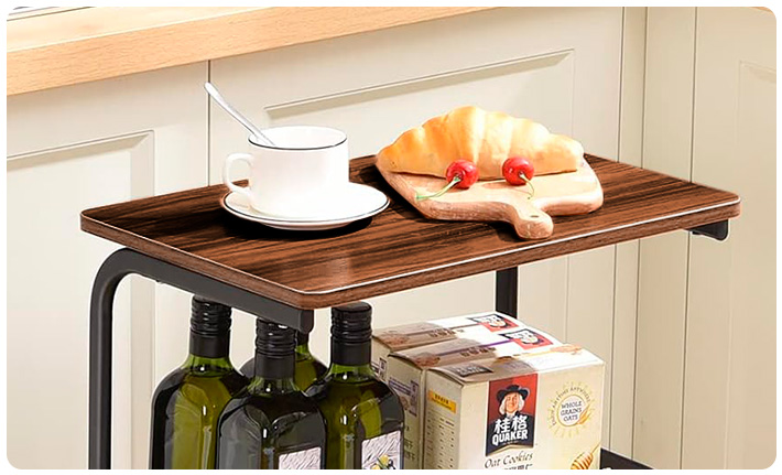 Carrito Organizador Metálico de 3 Niveles con Mesa, 2 Estantes y Ruedas Giratorias 360º