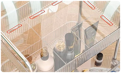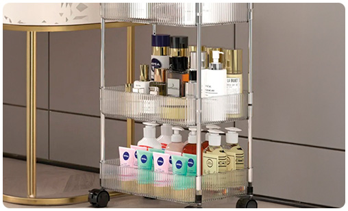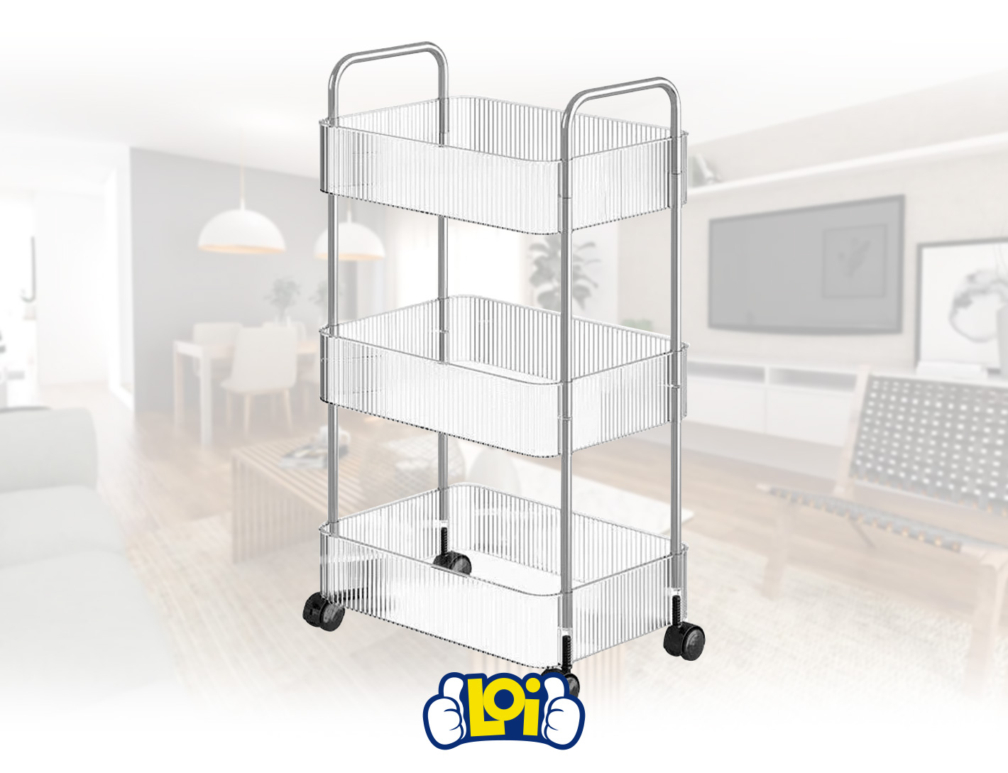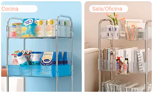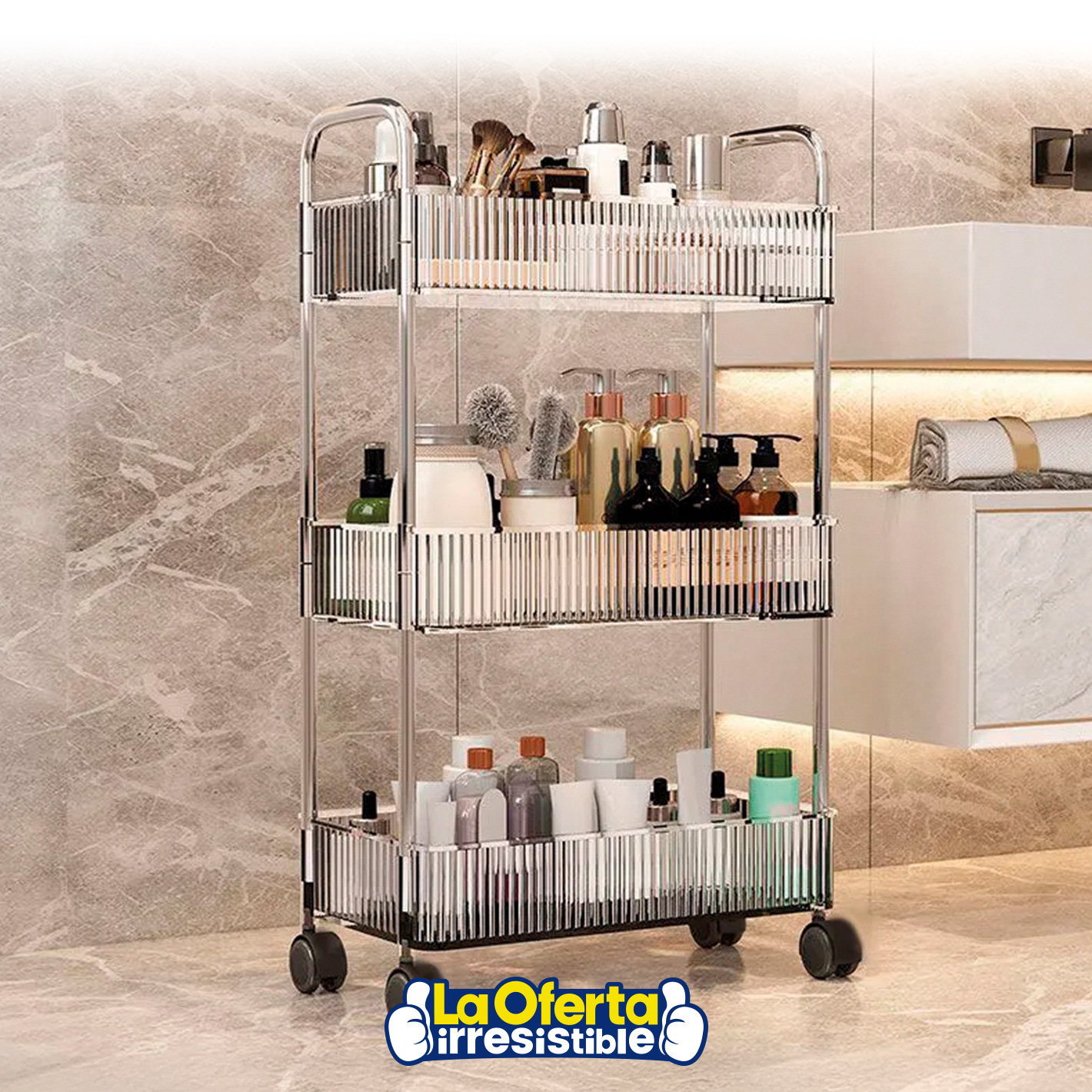 Organizador Carrito Multifuncional con 3 Estantes de Acrílico, Estructura Metálica y Ruedas