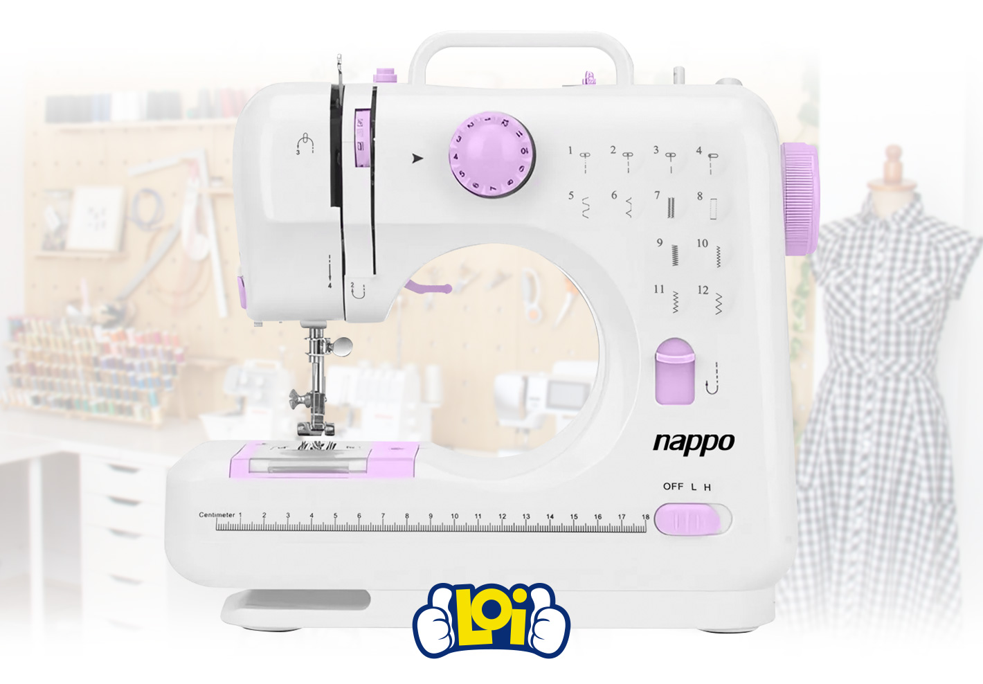 Máquina de Coser NAPPO con 12 Puntadas, Ojal de 4 Pasos, Iluminación LED y Pedal