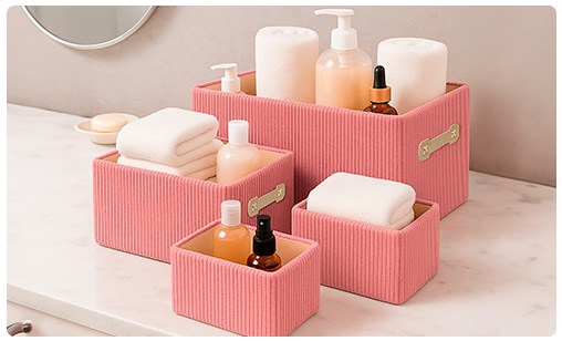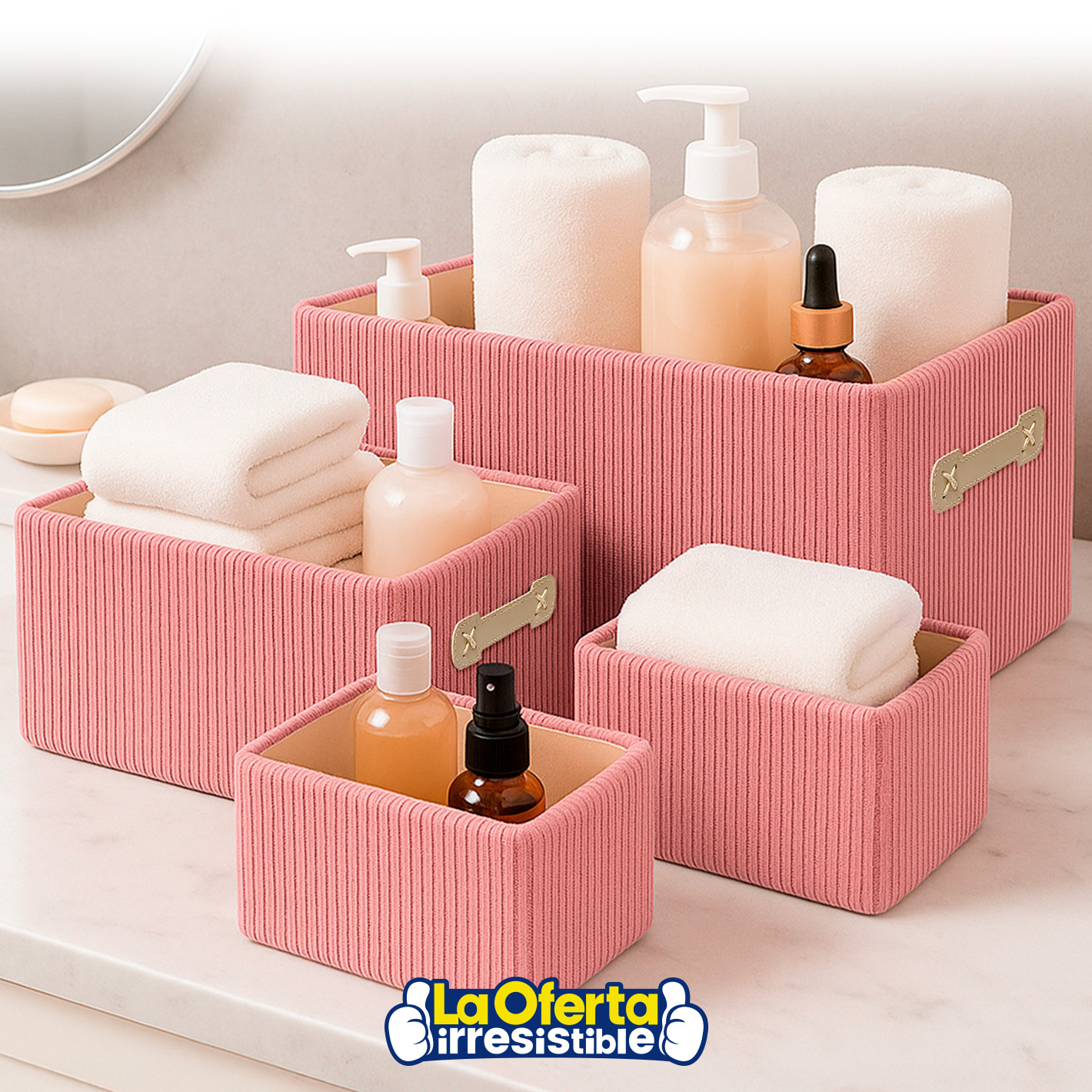 Organizá tu hogar con estilo gracias a este set de canastos de pana acanalada, que combina elegancia y funcionalidad en cada detalle. Su diseño liviano pero resistente ofrece un amplio espacio para guardar accesorios de belleza, toallas, juguetes o cualquier artículo del hogar, adaptándose a cualquier habitación. Perfectos para el dormitorio, baño, oficina o sala de estar, estos organizadores aportan un toque sofisticado mientras mantienen todo en su lugar.Podés canjear este artículo usando tus Metros OCA