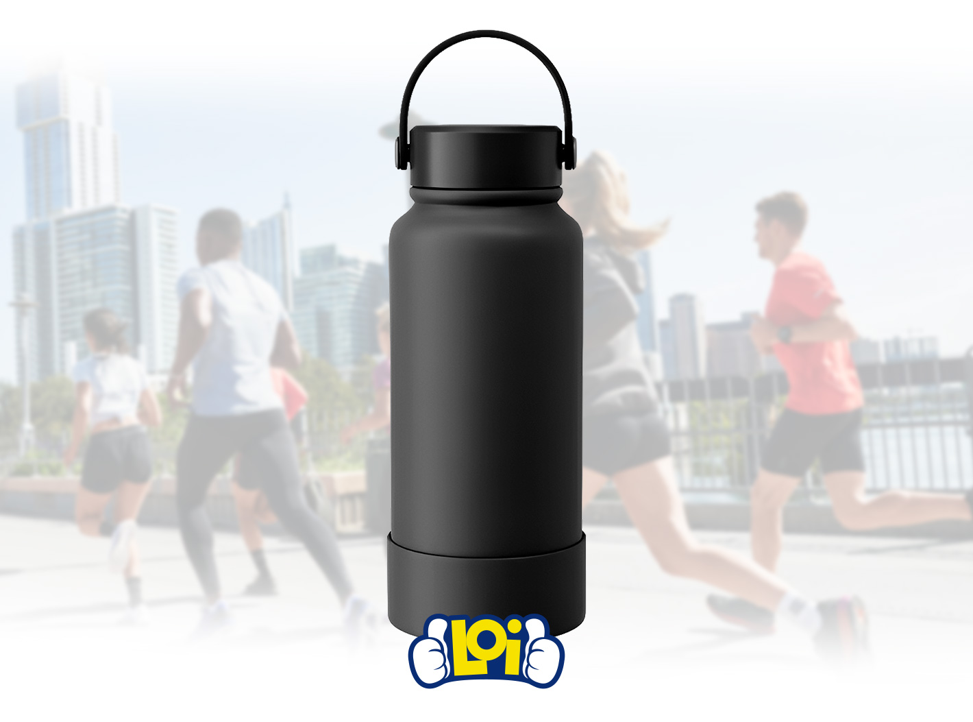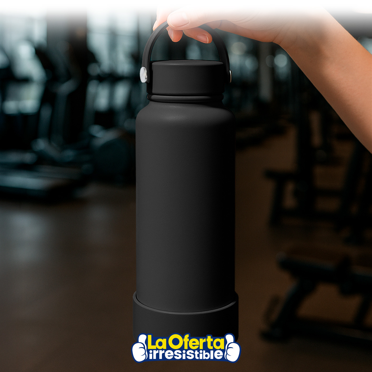 Termo de Acero Inoxidable de 1L, con Asa y Base de Silicona Extraíble - Beige