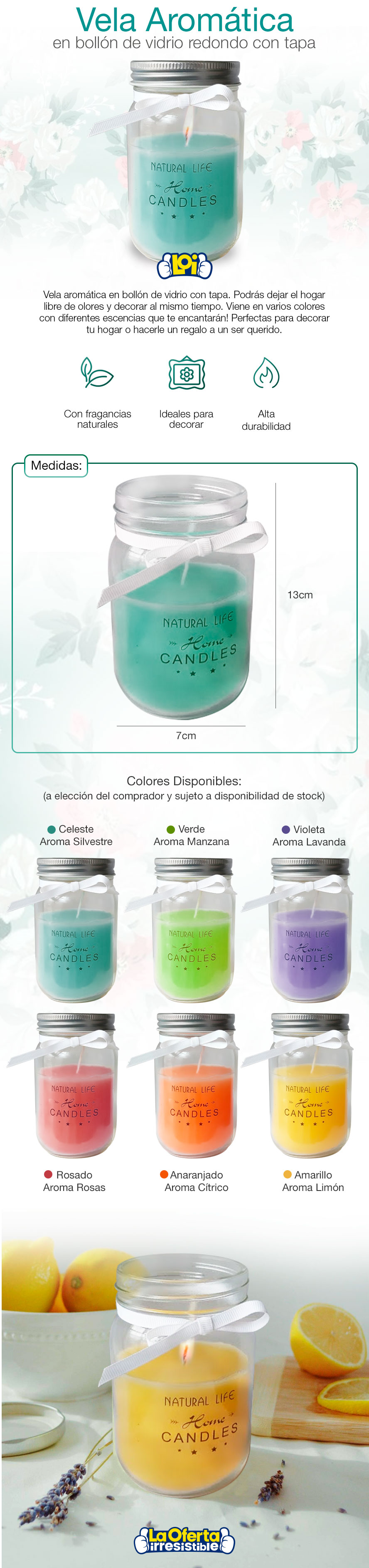 Vela Aromática Natural en Frasco de Vidrio con Tapa Metálica - Violeta Aroma Lavanda