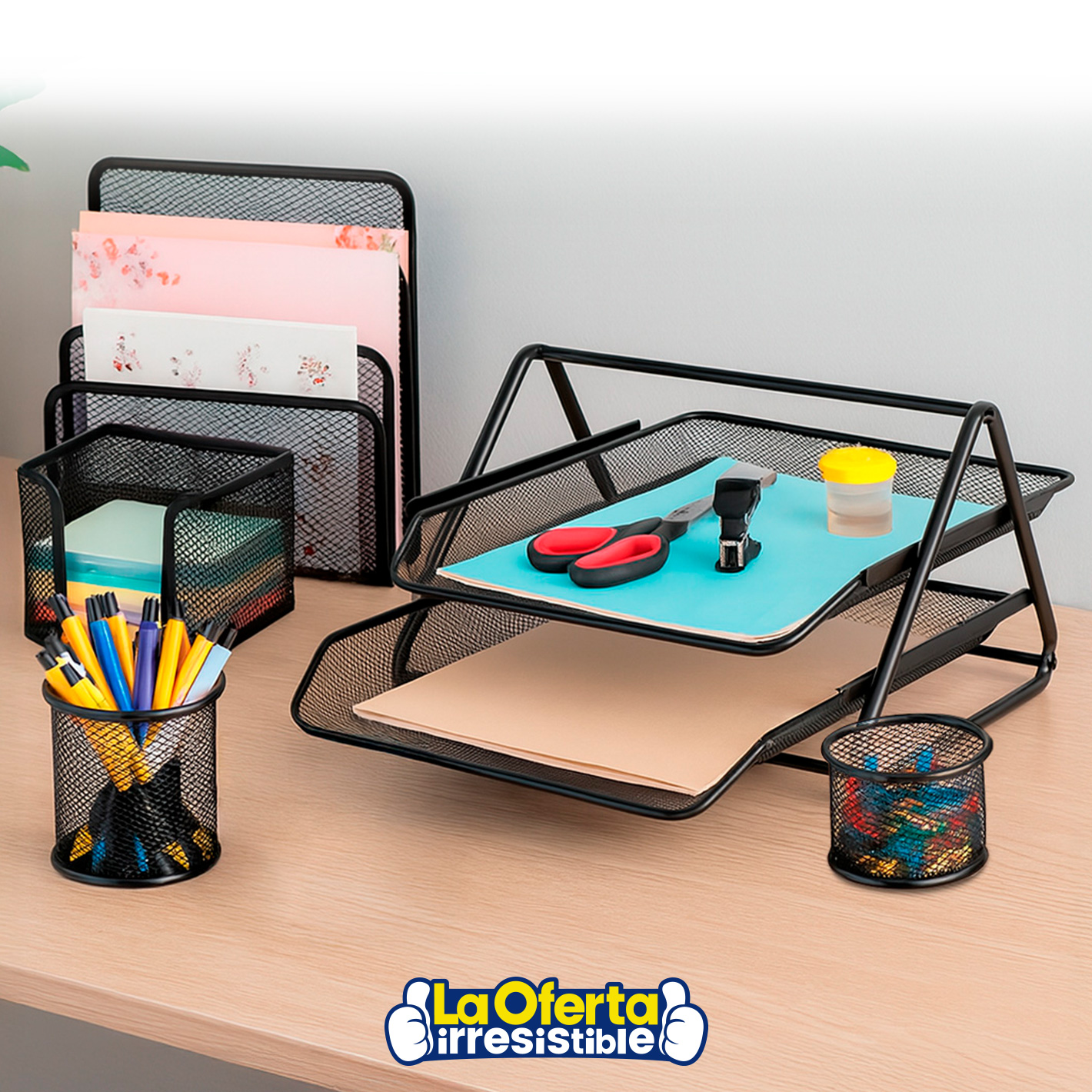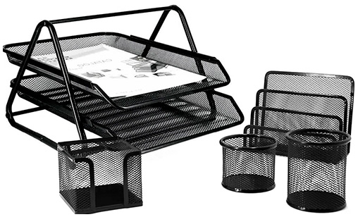 Set Organizador de Escritorio y Oficina, 5 Piezas de Malla Metálica