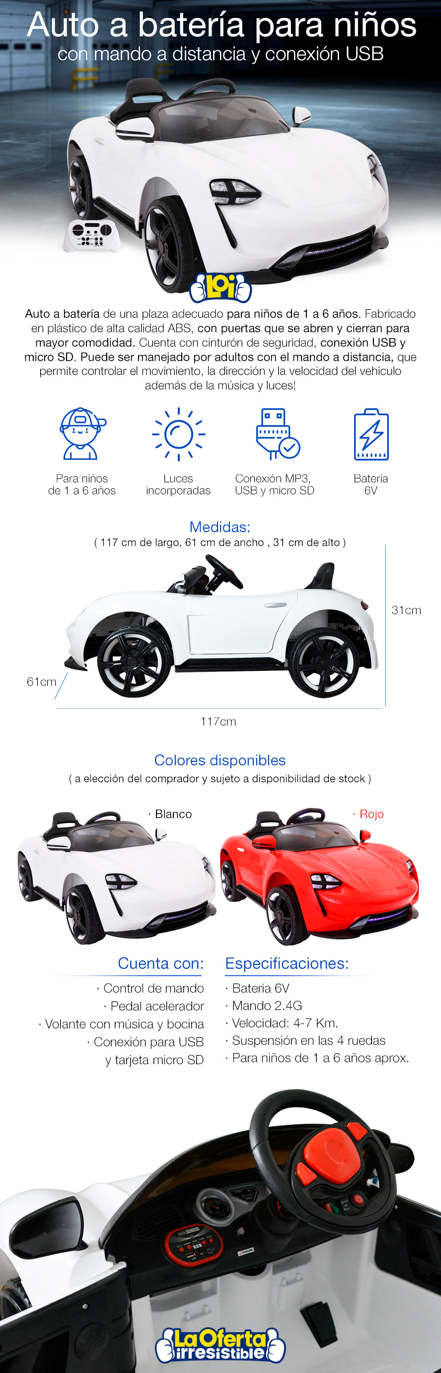 Auto a Batería para Niños hasta 6 años con Mando a Distancia Música y Luces - Rojo