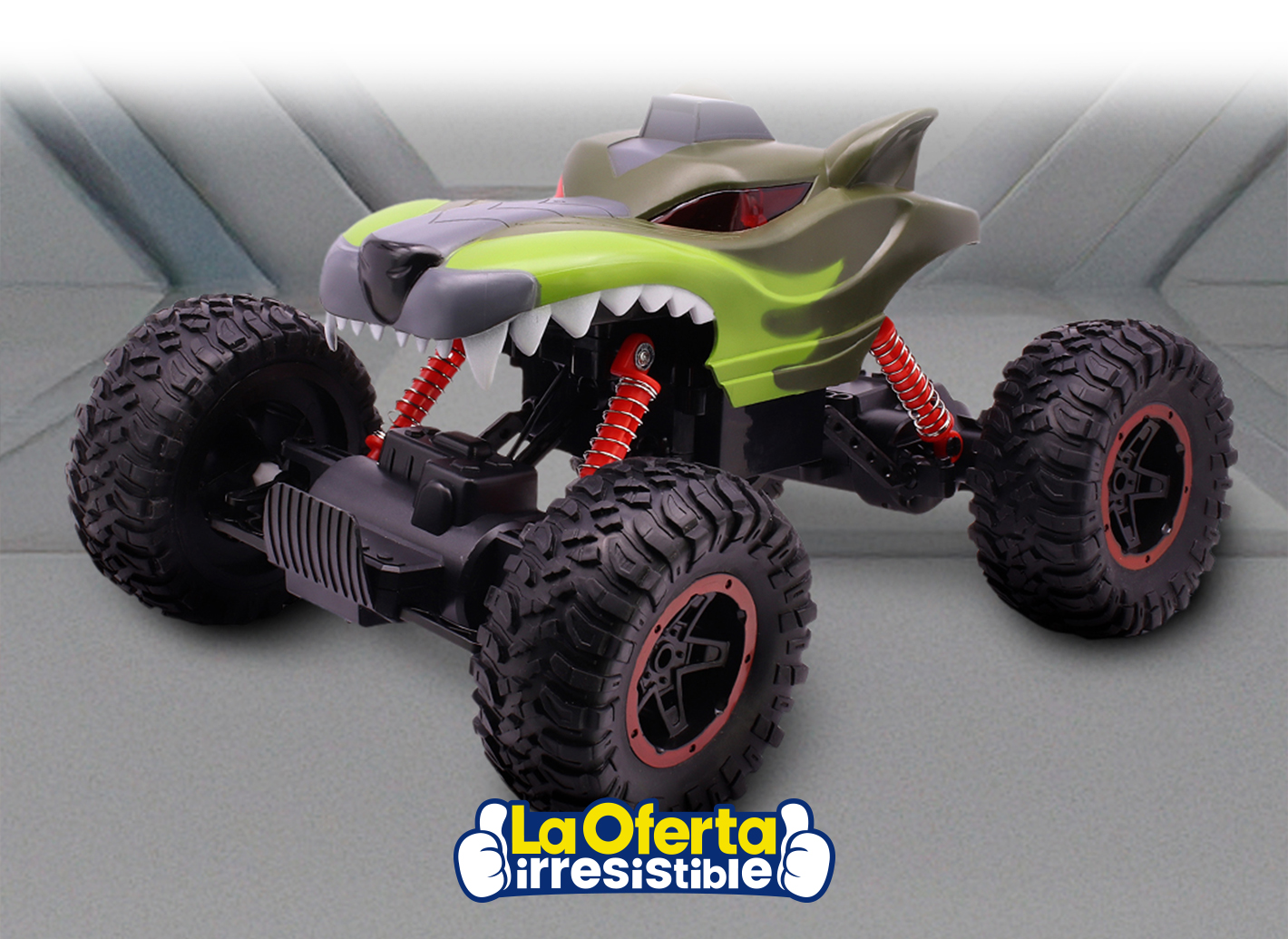 Destacado auto todoterreno con diseño de dinosaurio en tonos verdes, grises y rojos. Equipado con 4 neumáticos de goma de alta calidad y luces en los ojos, ofrece una experiencia atractiva incluso en terrenos difíciles. Funciona con batería recargable incluida y se controla fácilmente con un control remoto, ideal para los más pequeños, ayudando a elevar su cretividad. Además, cuenta con suspensión de alta calidad en sus 4 ruedas, para una diversión aún mayor.Podés canjear este artículo usando tus Metros OCA