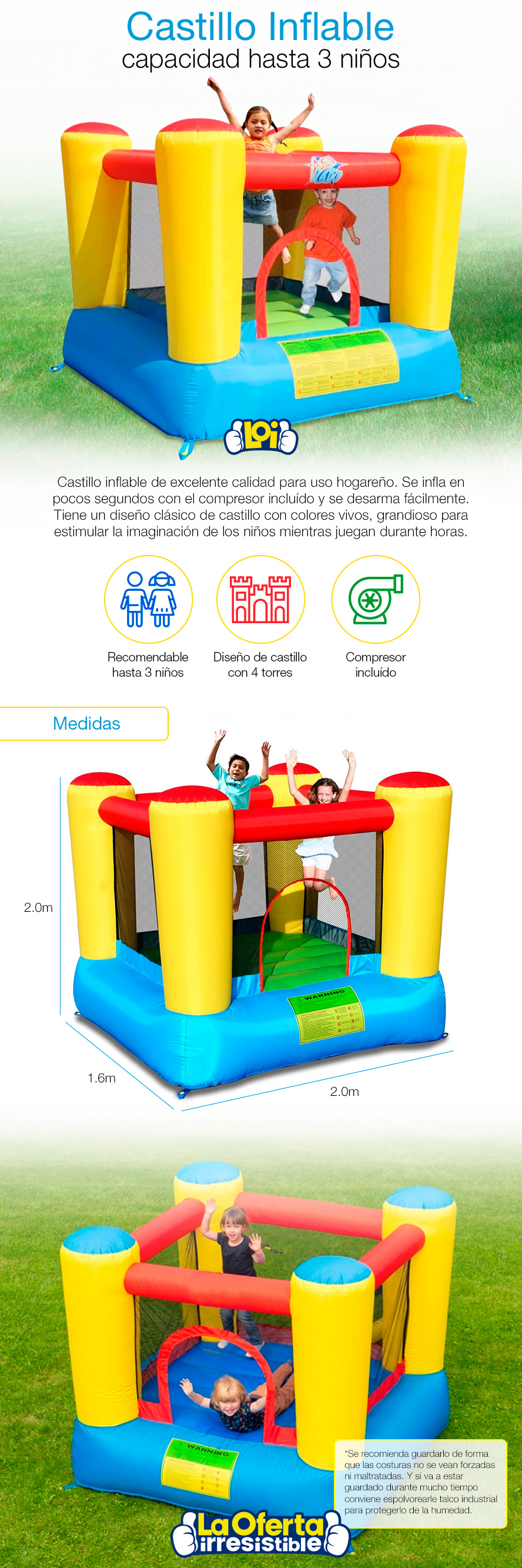 Castillo Inflable Clásico con Compresor Incluído Capacidad hasta 3 niños