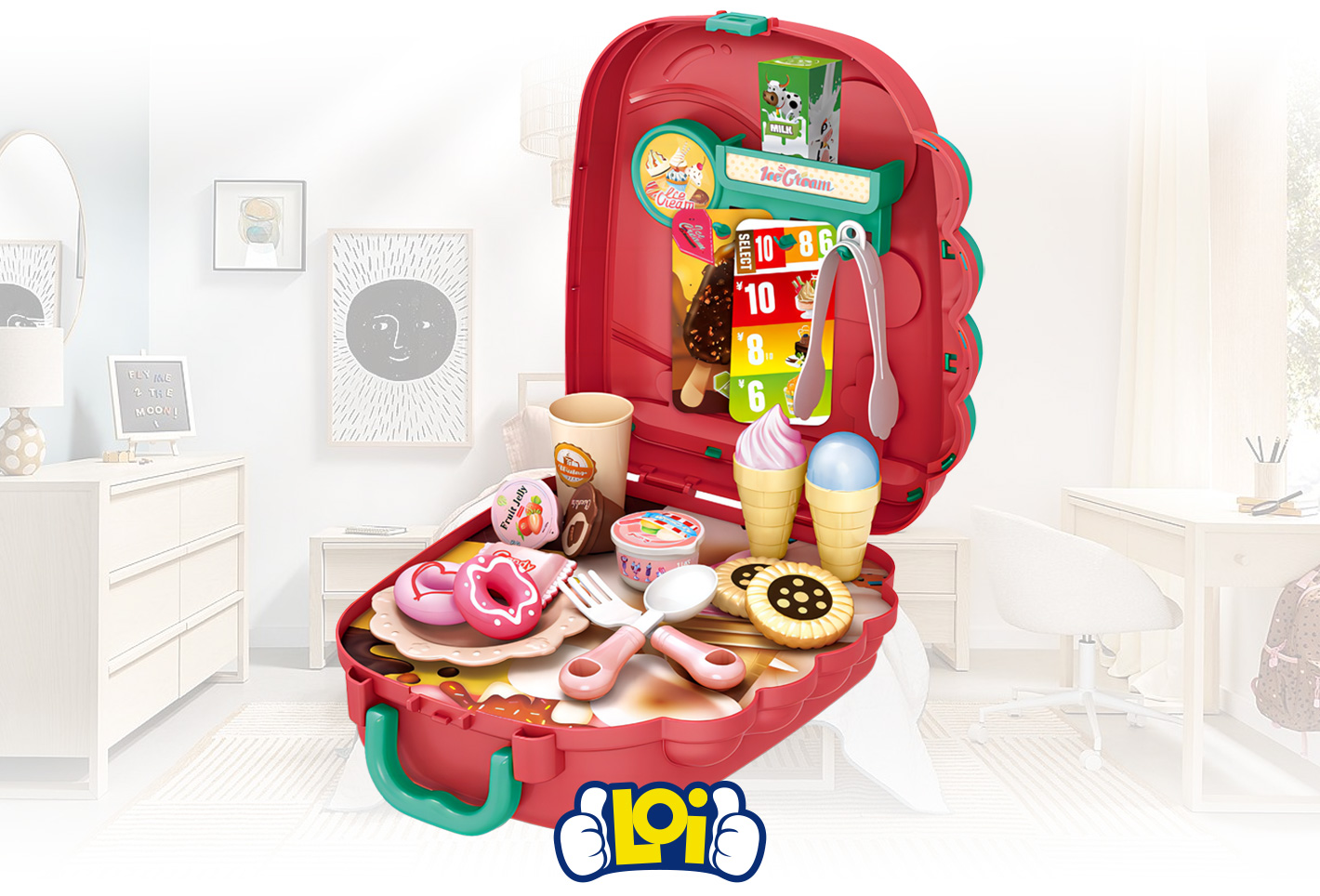 Mochila Infantil Set de Helados 25 Piezas con Correas y Asa de Transporte