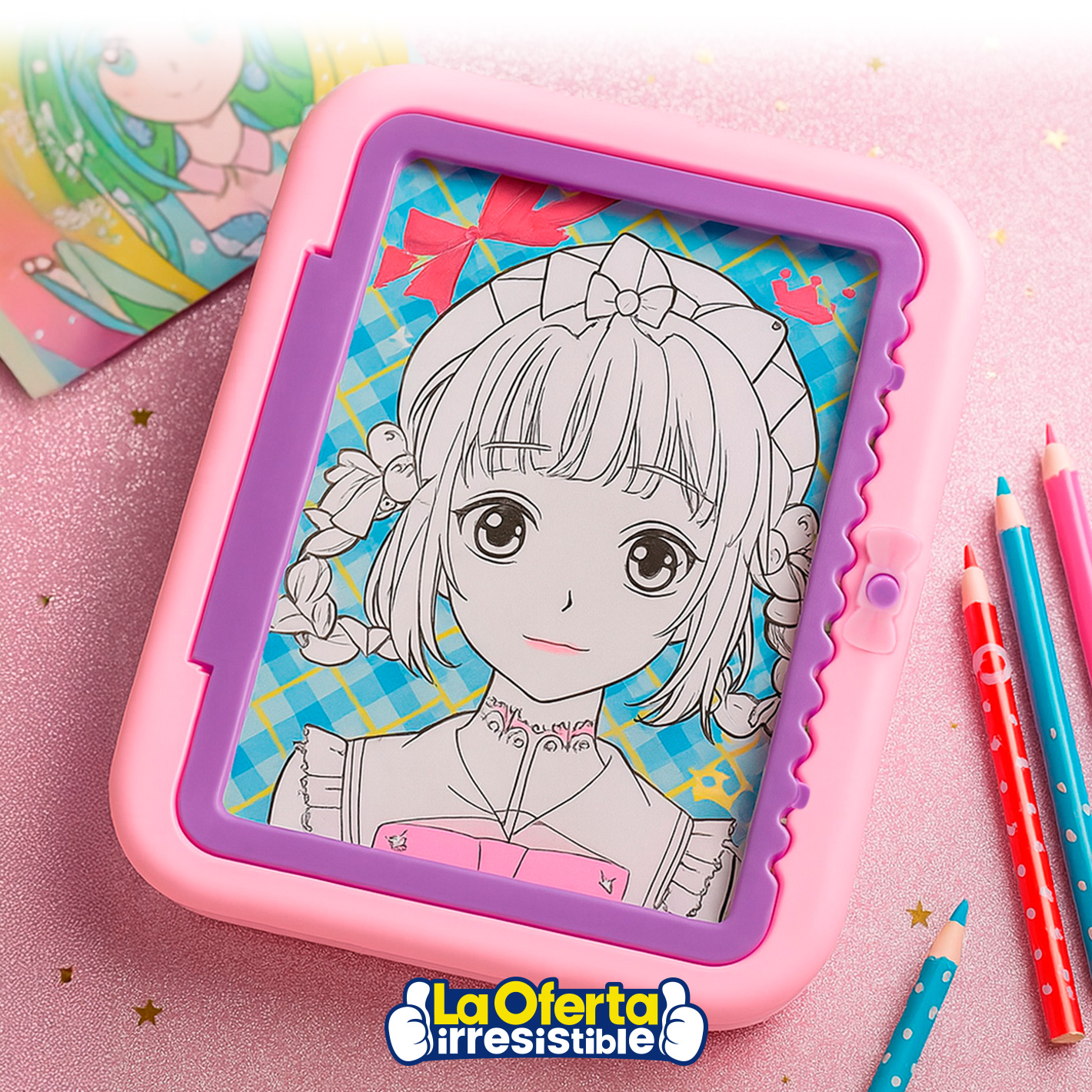 Tableta Retroiluminada con Luz LED y Soporte para Dibujar, Calcar y Colorear, Incluye 10 Hojas con Diseño, 10 Blancas y 3 con Stickers
