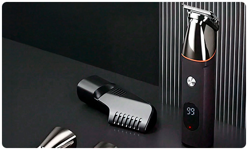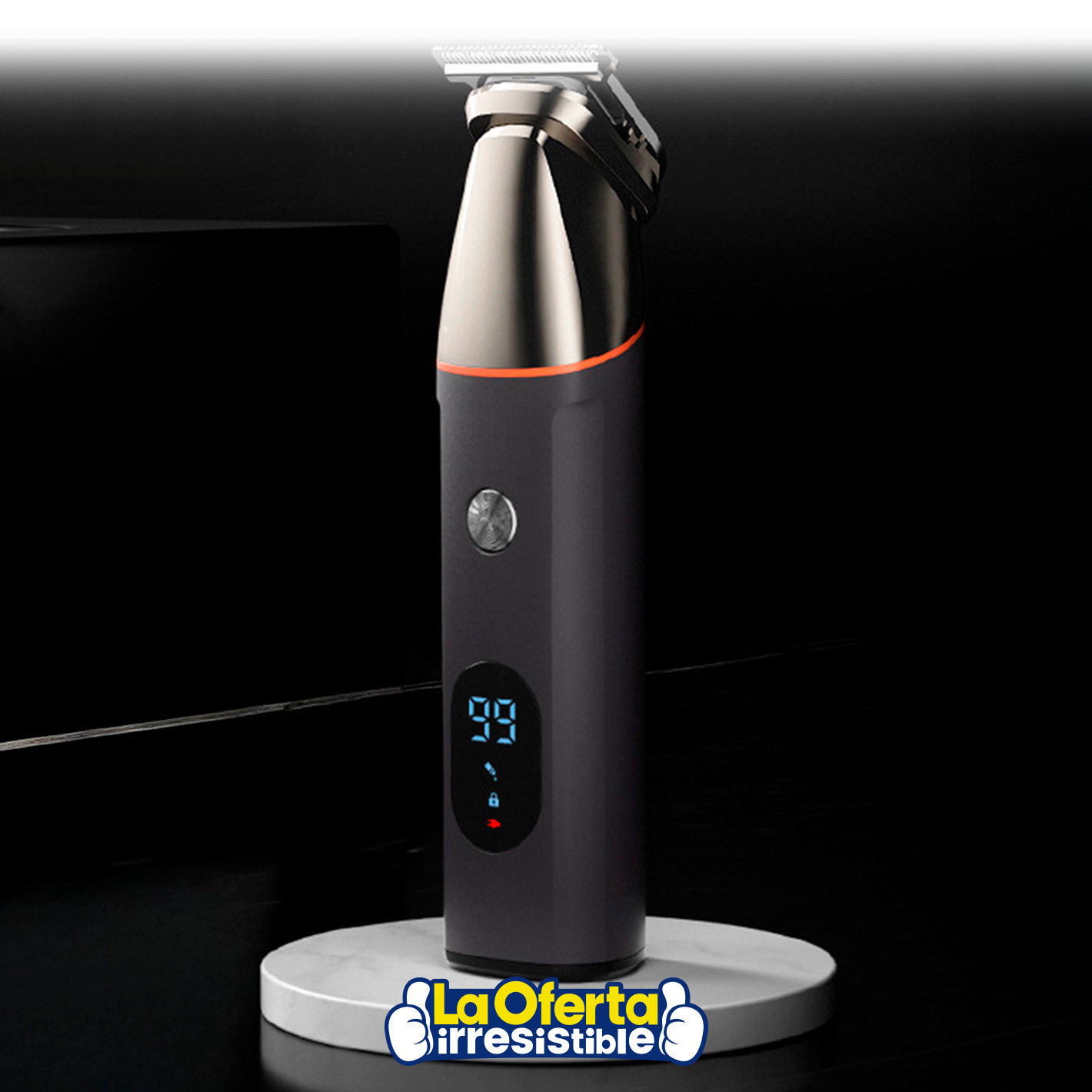 Afeitadora 4 en 1 Inalámbrica, con Display Digital, Cabezales Magnéticos Intercambiables, Base de Carga y Accesorios