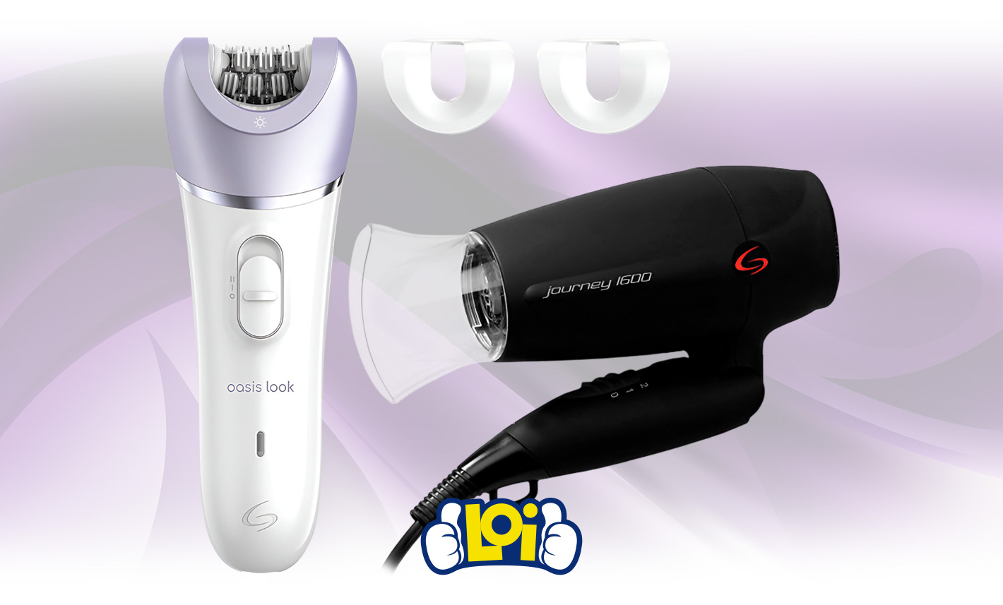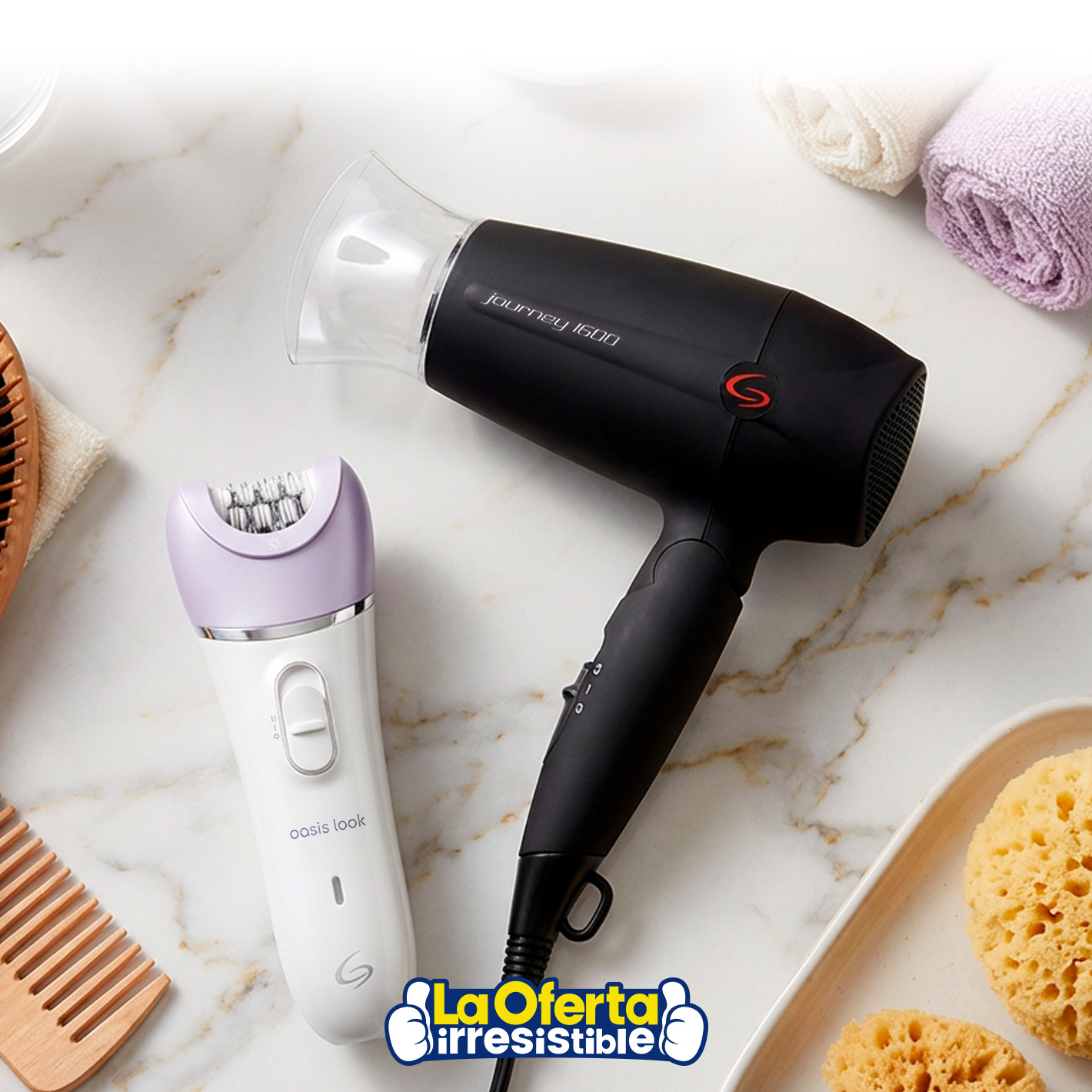 Combo GAMA Depiladora Oasis Look con 2 Cabezales + Secador de Pelo Journey Travel 1600W de Potencia
