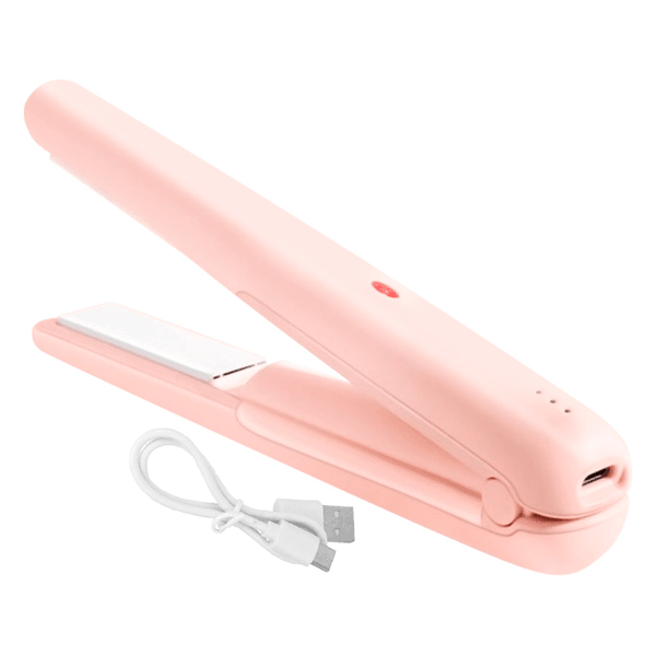 Mini Planchita de Pelo Inalámbrica, con Placas de Cerámica, Calentamiento en 15s y Batería Recargable - Rosa