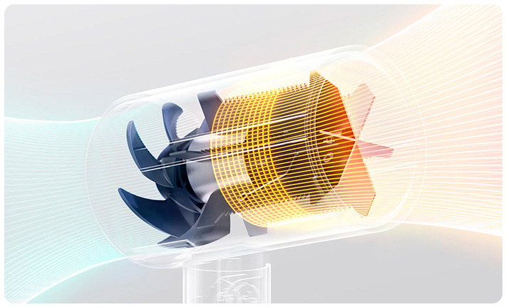 Un motor de alto rendimiento y alta velocidad de 20000rpm proporciona una gran potencia, con un alto caudal de aire de 15m/s. Gracias a su exclusivo diseño de hélice de 6 aspas con sistema bypass, genera un flujo de aire potente, estable y confiable para un rendimiento superior.