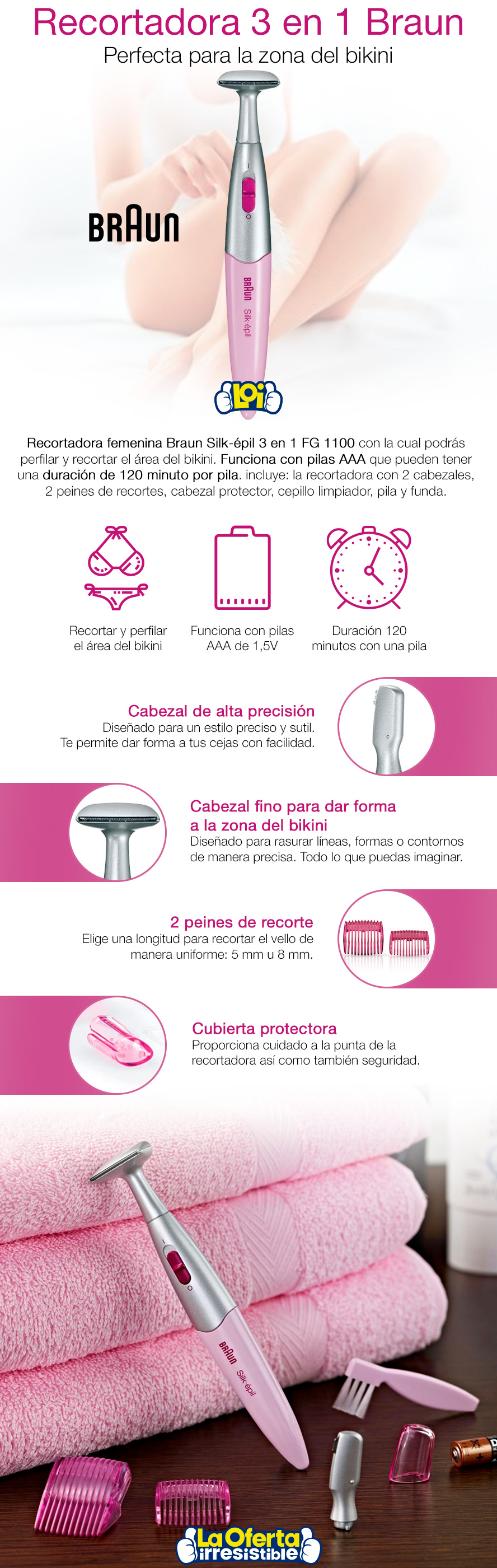 Recortadora 3 en 1 BRAUN Inalámbrica Área del Bikini + Accesorios