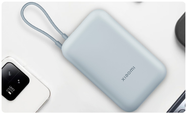Powerbank XIAOMI de 10000mAh con Cable Tipo C Integrado + 2 Puertos - Ice Blue