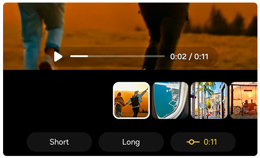 - Editá de forma más inteligente y rápida con recorte automático. Detectá los momentos clave, eliminá las pausas largas y las escenas repetidas, y resaltá las mejores partes, creando videos cortos y atractivos, perfectos para compartir con familiares y amigos. Simplemente capturá tus momentos y dejá que la AI los transforme en clips pulidos y listos para compartir.