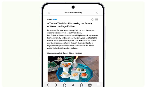 Browsing Assist te ayuda a procesar más rápido los artículos largos, resumiendo la información clave y traduciendo páginas web directamente en Samsung Internet. Ahorrá tiempo, entendé más y accedé de inmediato a lo que más importa cada vez que navegues.