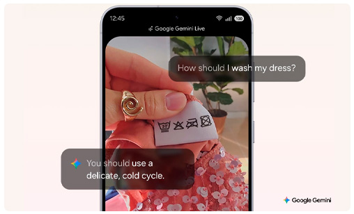 Hablá libre y naturalmente con Gemini Live para obtener información en tiempo real. Compartí tus momentos a través de la cámara o subiendo imágenes, y obtené ayuda con tareas como descifrar las etiquetas de cuidado de tu ropa favorita.