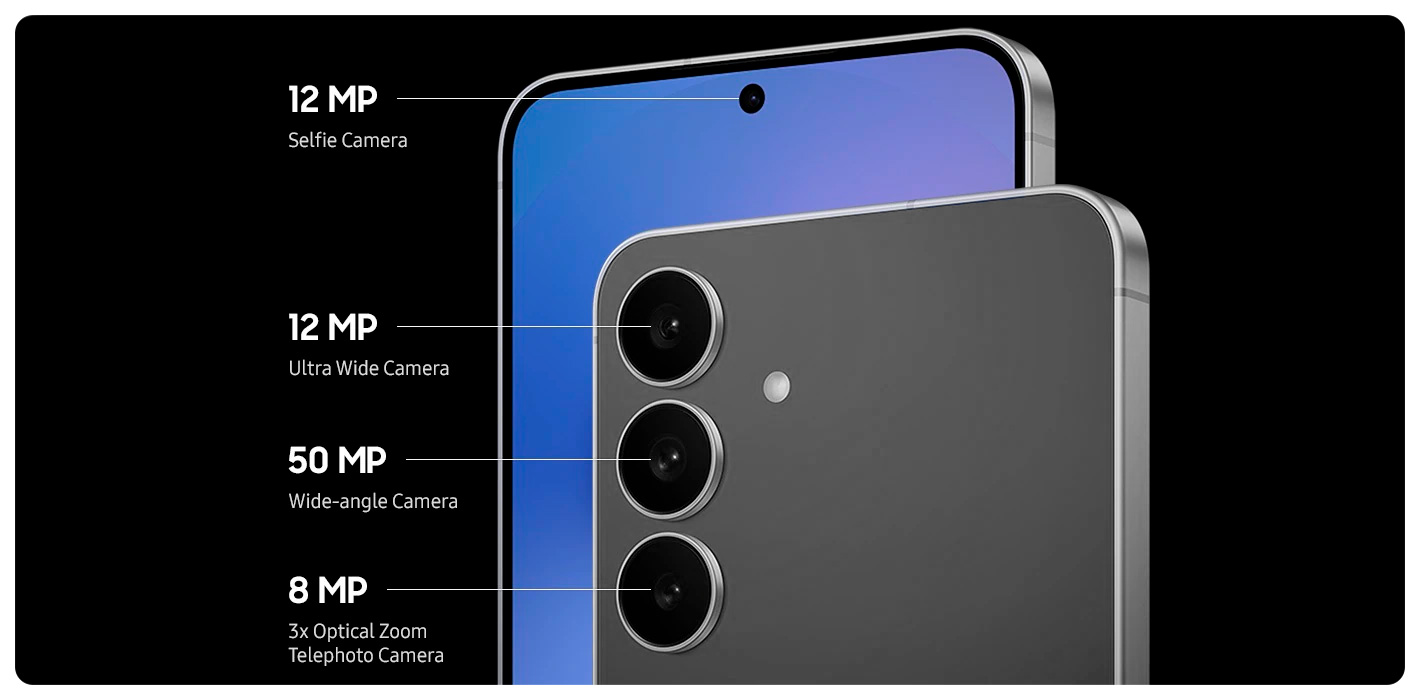 - El Galaxy S25 FE cuenta con una cámara frontal de 12MP que captura selfies enriquecidas en detalles y colores vibrantes, con un 20% más de resolución que el Galaxy S24 FE, lo que logra tonos realistas y texturas más finas en cada toma.