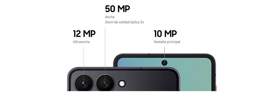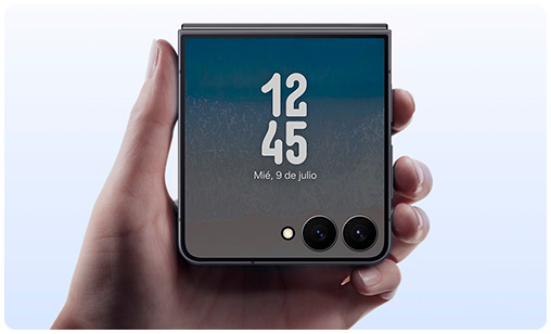 - Más compacto que nunca, entra sin esfuerzo en el bolsillo. La nueva pantalla de cubierta del Galaxy Z Flip7 incorpora el bisel más fino hasta ahora, aprovechando mejor la FlexWindow. La pantalla principal, completamente limpia y sin interrupciones, ofrece una experiencia visual continua y cuidada.