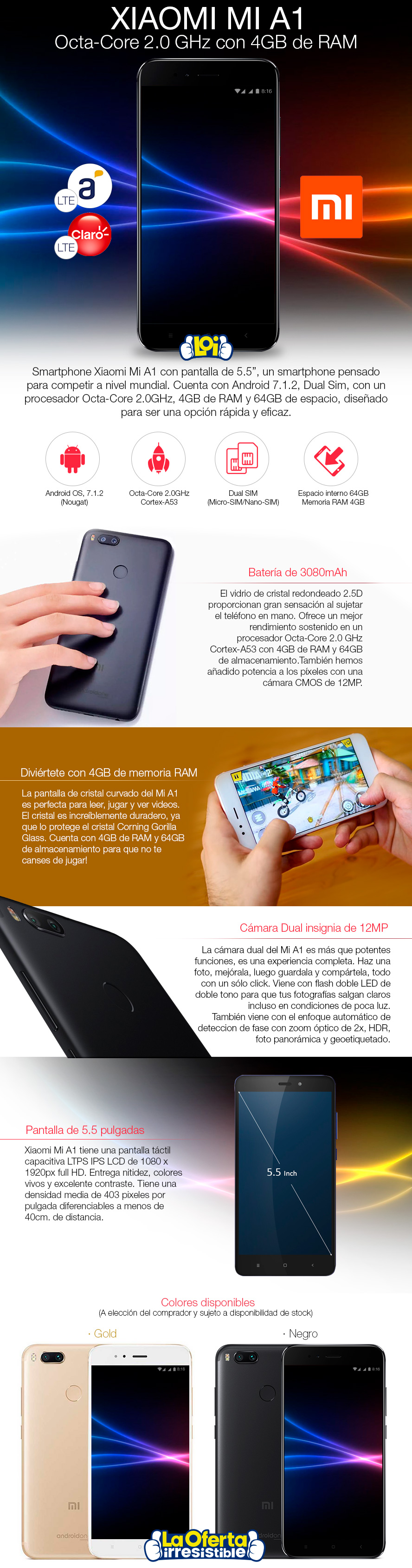 Xiaomi Mi A1 LTE 5.5" Octa Core 64GB 4GB de RAM DORADO
