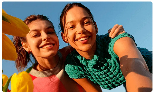 Los algoritmos del modo belleza son ahora más sutiles, conservando los detalles de textura de la piel para conseguir un aspecto radiante. Cuando se detectan varias personas, la cámara cambia automáticamente de modo para capturar las sonrisas de todos.