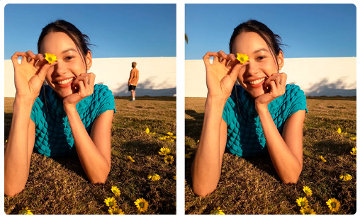 - Los algoritmos del modo belleza son ahora más sutiles, conservando los detalles de textura de la piel para conseguir un aspecto radiante. Cuando se detectan varias personas, la cámara cambia automáticamente de modo para capturar las sonrisas de todos.