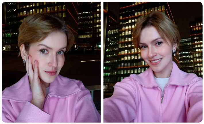 La cámara frontal de alta definición con gran apertura, combinada con algoritmos de AI, reduce inteligentemente el ruido y restaura con precisión la textura de la piel y los tonos naturales, haciendo que las tomas nocturnas sean aún más cautivadoras.