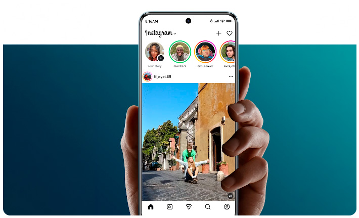 - El último estudio creativo de bolsillo te permite compartir en Instagram con un solo toque, destacando tu contenido al instante.