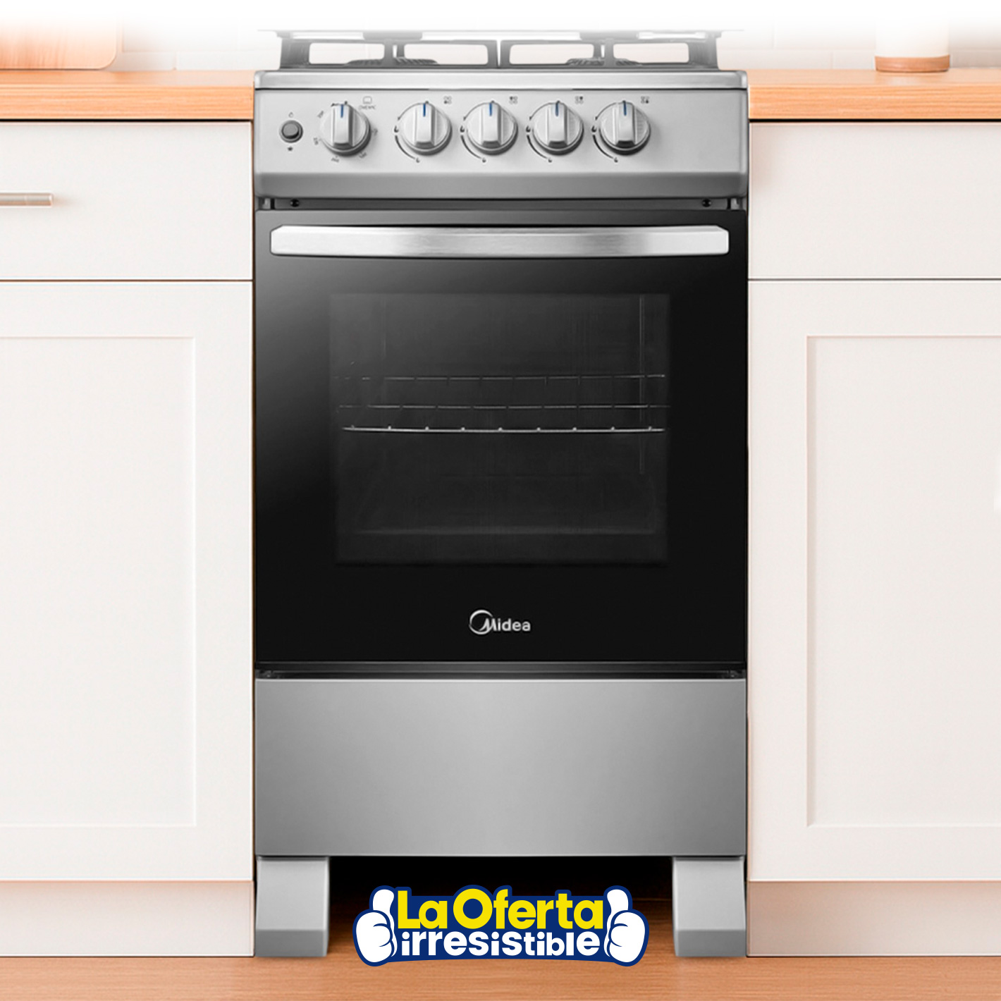 Esta cocina a gas Midea de 4 hornallas combina eficiencia, seguridad y diseño moderno para tu cocina. Equipada con encendido eléctrico, puerta con vidrio doble y luz en el horno, ofrece practicidad en cada uso. Sus 4 hornallas FireVortex (1 de alto rendimiento, 2 estándar y 1 de bajo rendimiento) permiten una cocción precisa y adaptable a todo tipo de preparaciones. El horno, con una capacidad de 62L, incluye rejilla y asadera, ideal para cocinar con comodidad. Con un diseño compacto y materiales de calidad, es una opción confiable y funcional para el día a día en tu hogar.Disponible en: