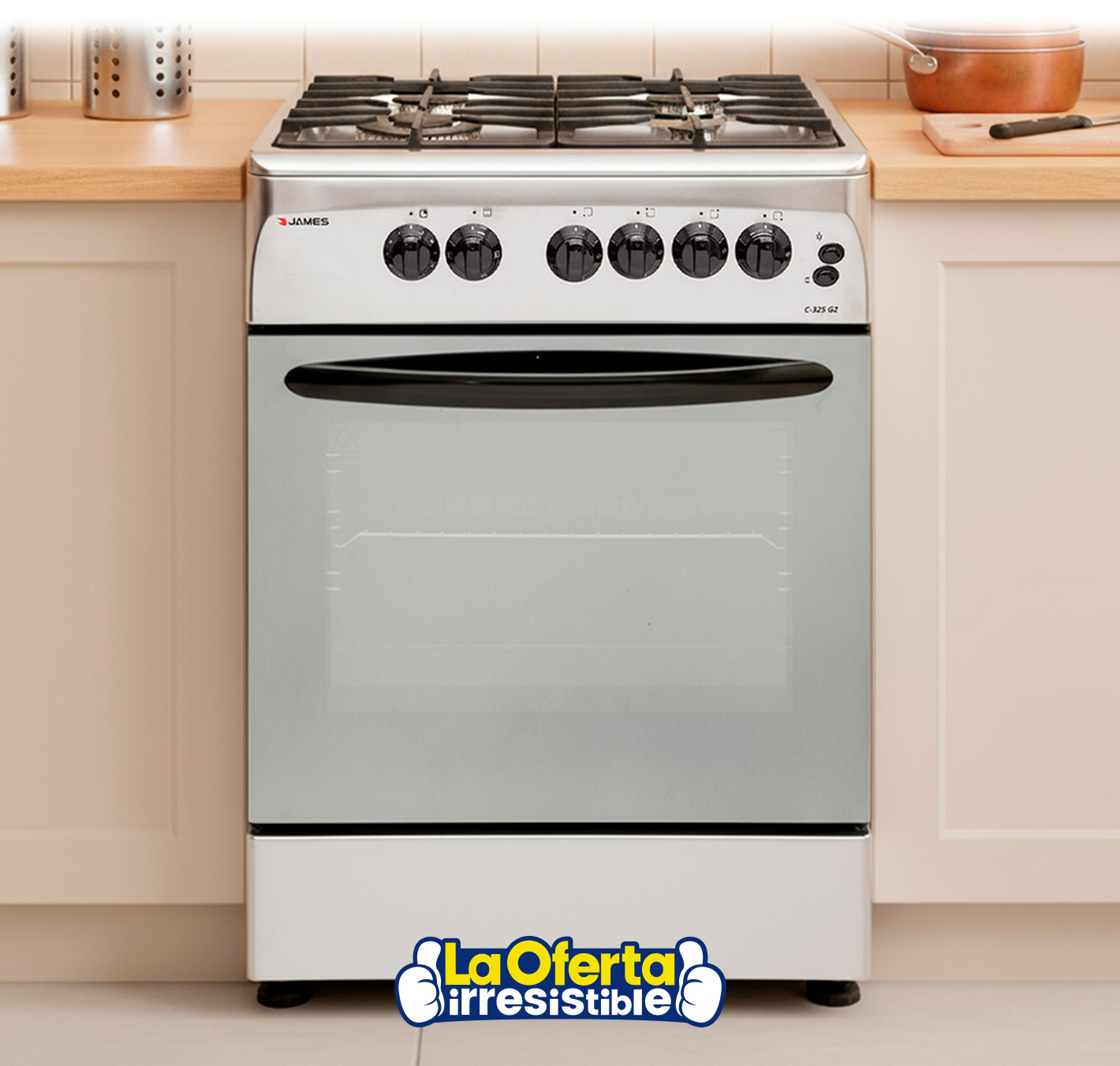 Prepará tus mejores recetas con la cocina a gas James, diseñada para ofrecer practicidad, seguridad y durabilidad en cada uso. Equipada con 4 hornallas a supergás, permite cocinar de forma rápida y eficiente. Su estructura de acero inoxidable garantiza resistencia y fácil limpieza, mientras que las parrillas sobre mesada de hierro fundido aportan mayor robustez y vida útil. Tiene grill, luz en el horno y una puerta de doble vidrio, que mejora la seguridad y conserva mejor el calor para una cocción uniforme. Además, incorpora un timer mecánico con aviso sonoro, ideal para controlar los tiempos de cocción sin esfuerzo.Disponible en: