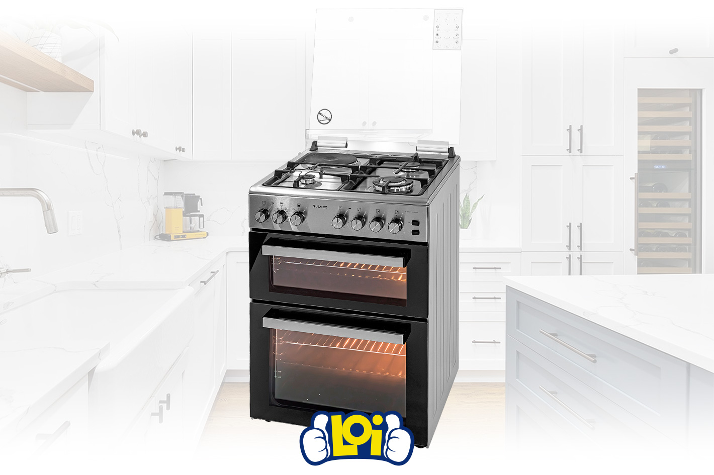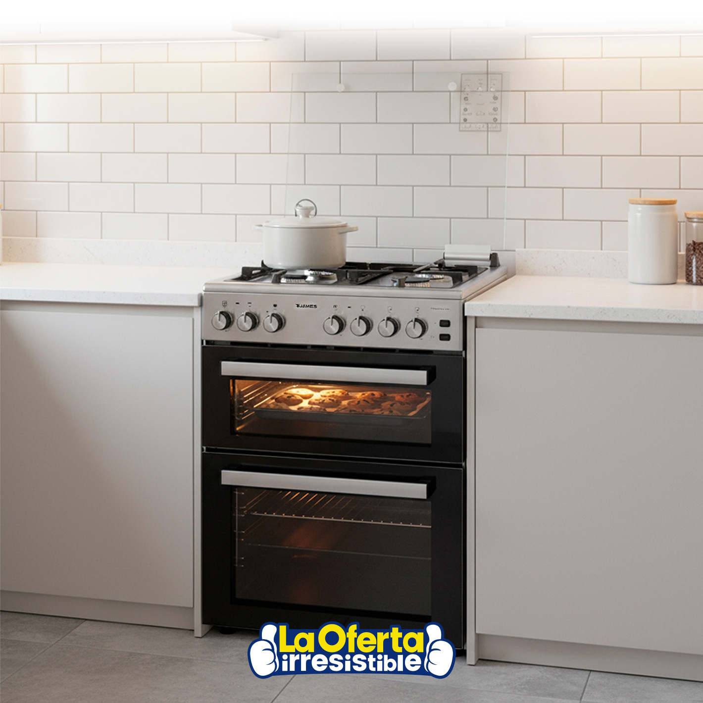 Cocina Combinada JAMES con 3 Hornallas a Gas, Disco y Doble Horno: 1 Eléctrico y 1 a Gas